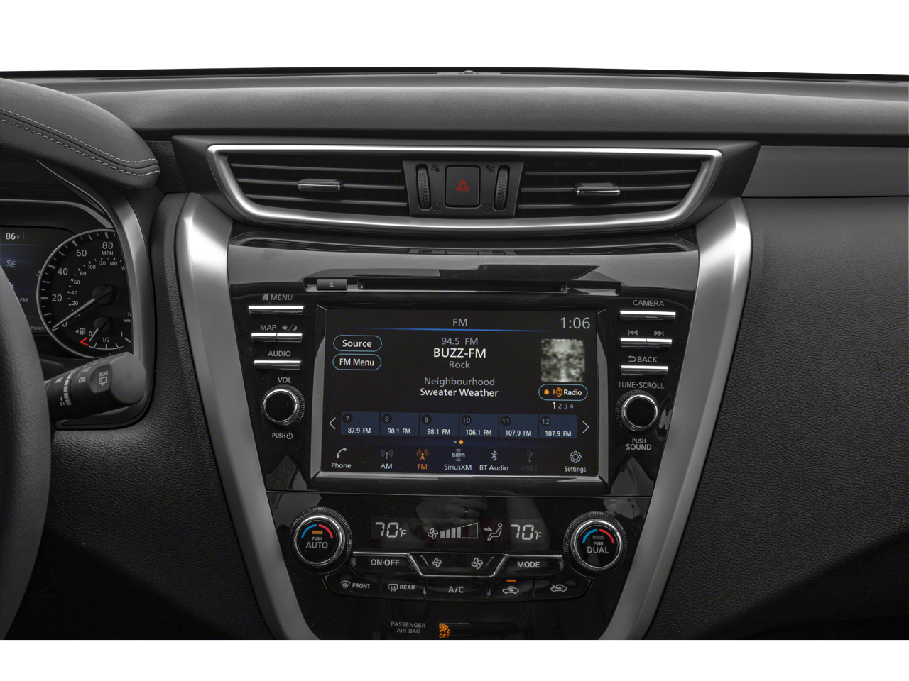 Step inside the Murano SL and experience unparalleled comfort and convenience. Luxurious leather-appointed seating, heated front and rear seats, and a power driver's seat with memory function ensure you and your passengers travel in the utmost comfort. The NissanConnect infotainment system, complete with Apple CarPlay and Android Auto, keeps you connected and entertained on the go.