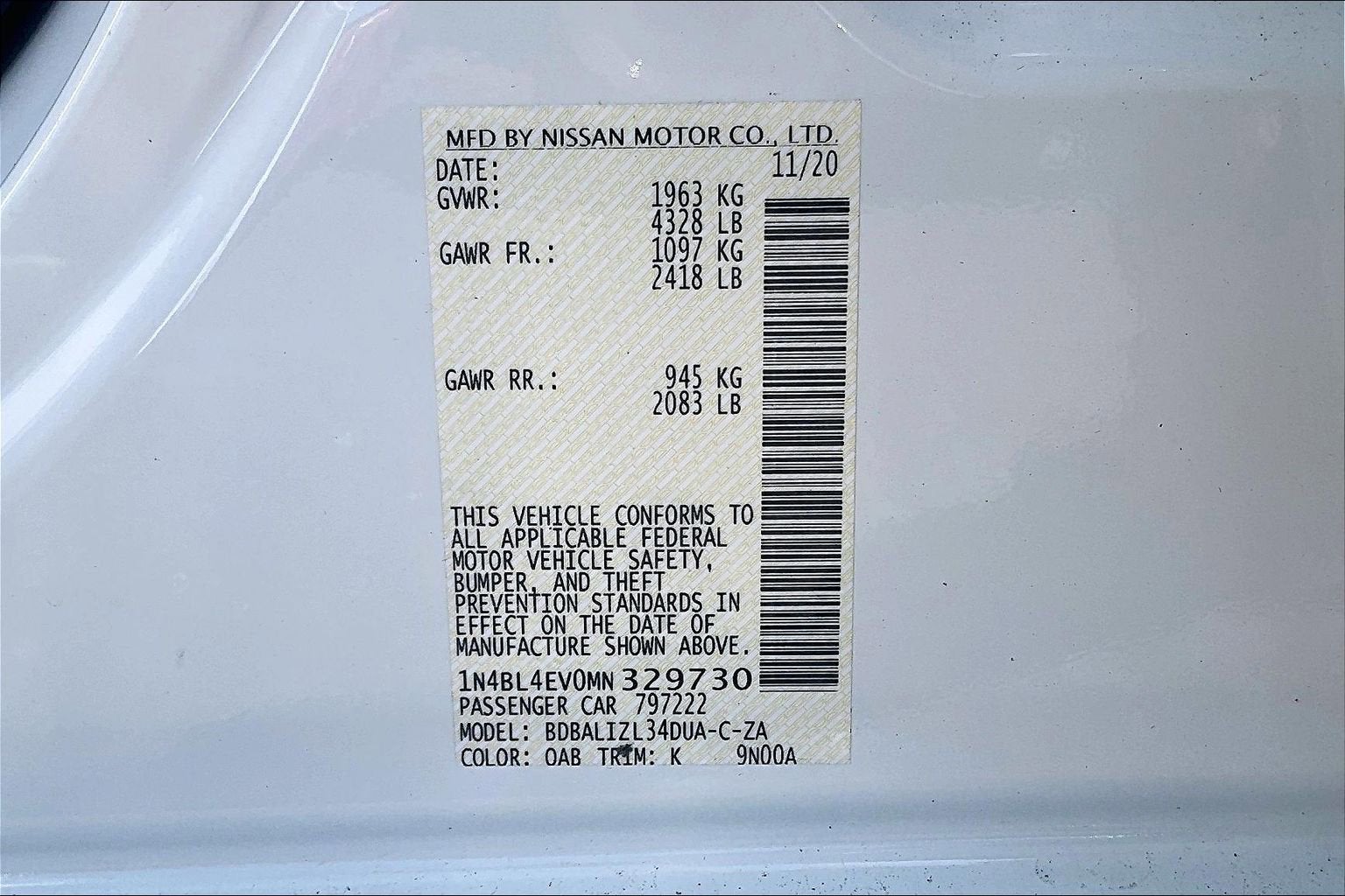 - Vehicle Name: Nissan Altima