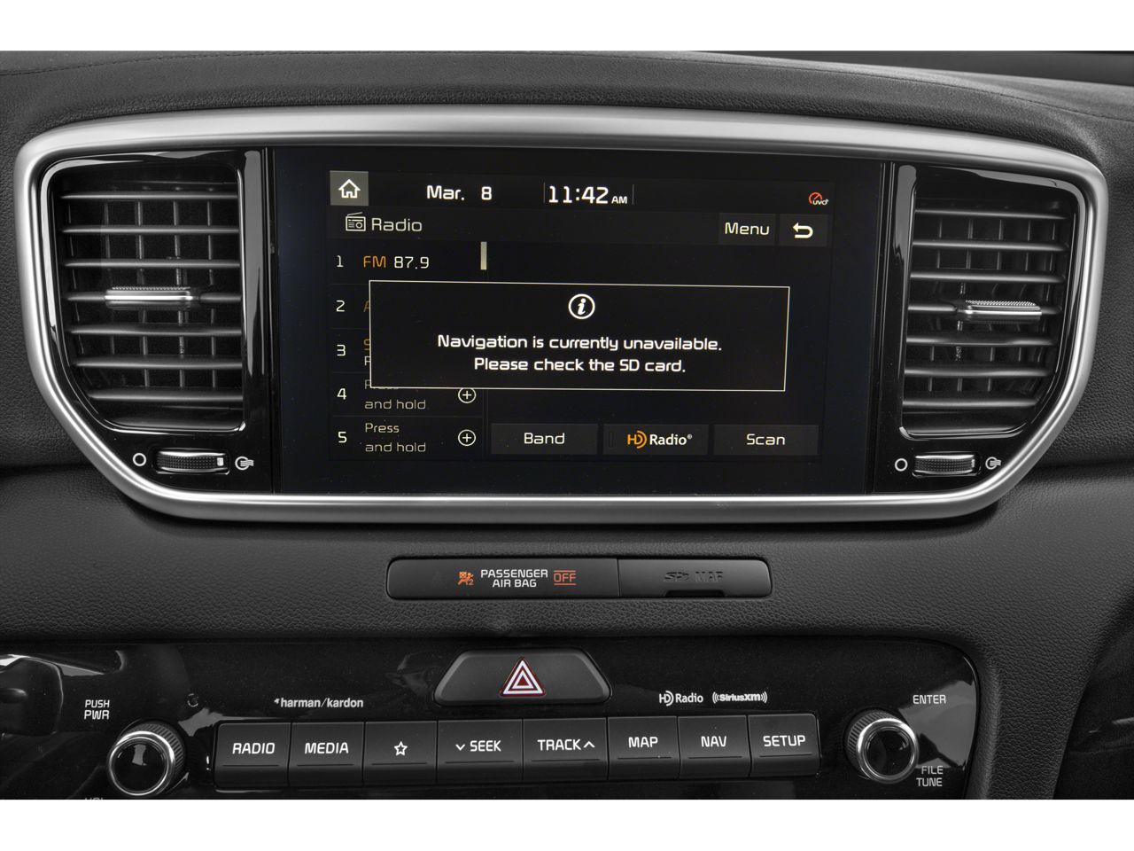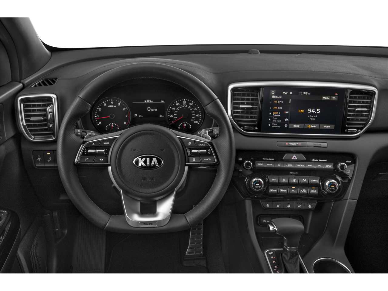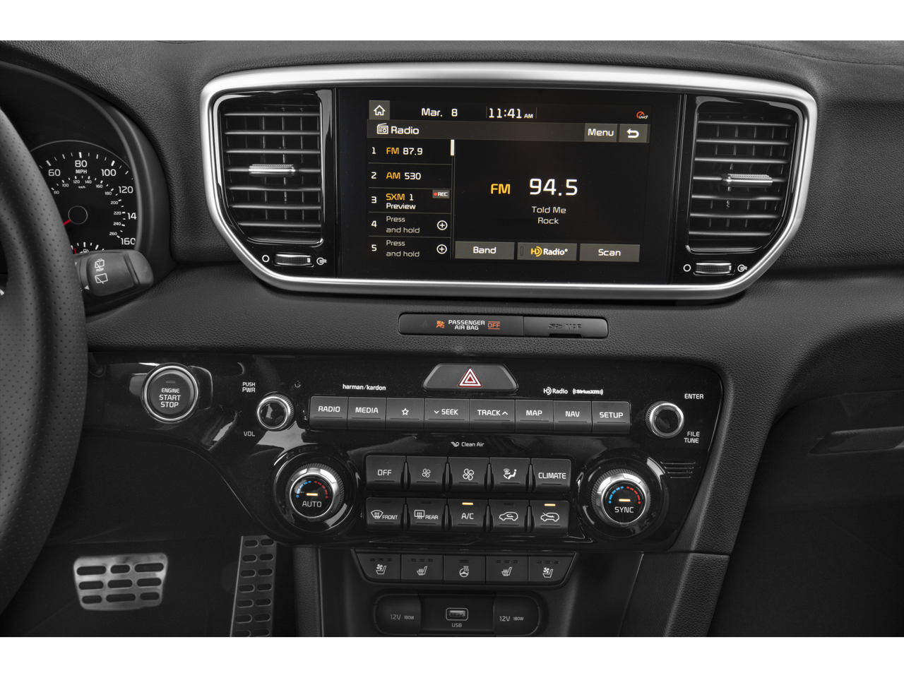 • Radio: AM/FM/SiriusXM Audio System -inc: 8" touchscreen, navigation, 8 speakers including subwoofer, 320 watt harman/kardon premium audio, Clari-Fi, UVO telematics, Apple CarPlay & Android Auto, voice recognition, USB/aux input ports, wireless phone charging, steering wheel controls and Bluetooth® w/audio streaming