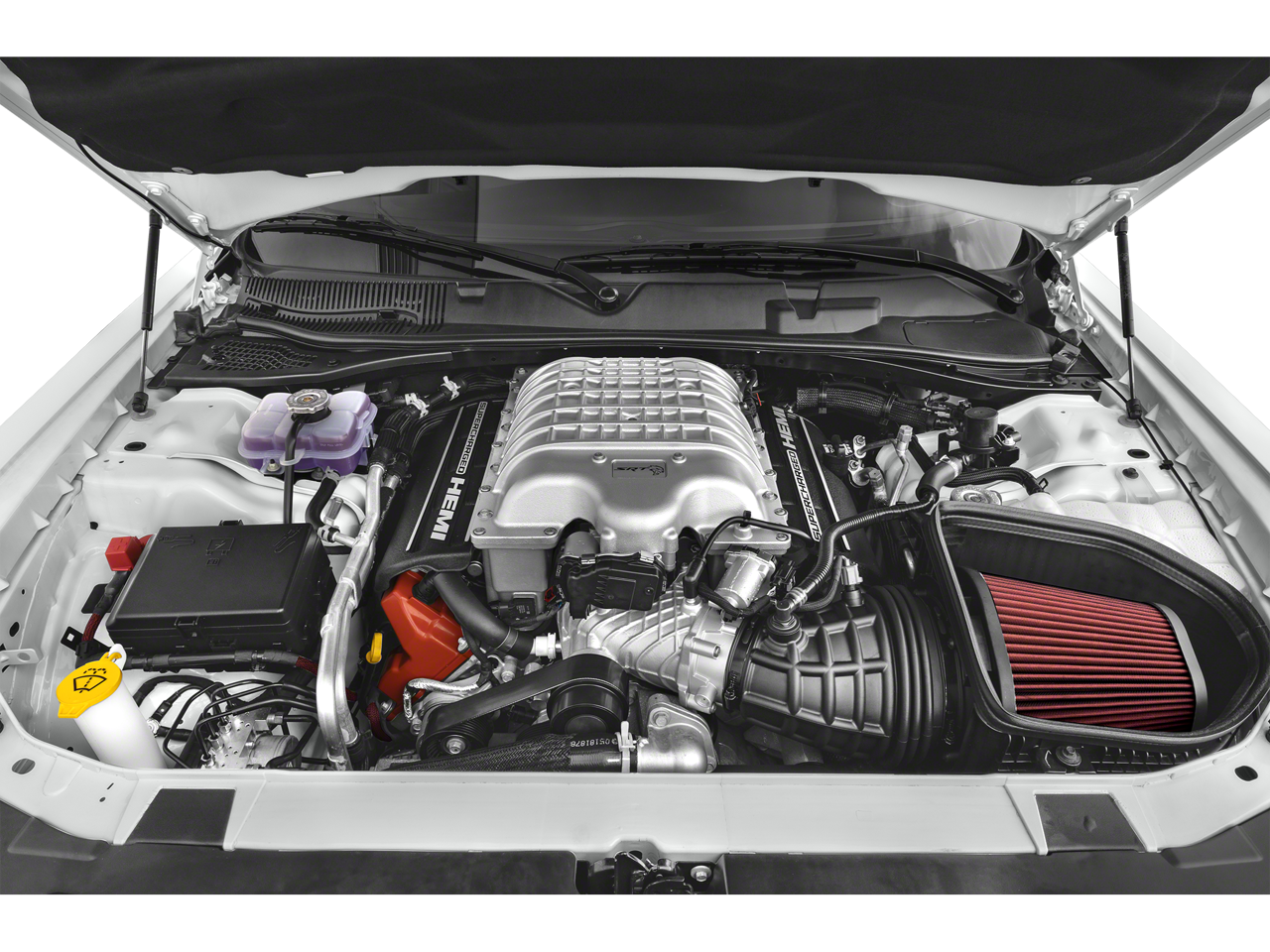 * A 6.2L supercharged HEMI V8 paired with an 8-speed TorqueFlite automatic transmission, delivering jaw-dropping horsepower and relentless acceleration.