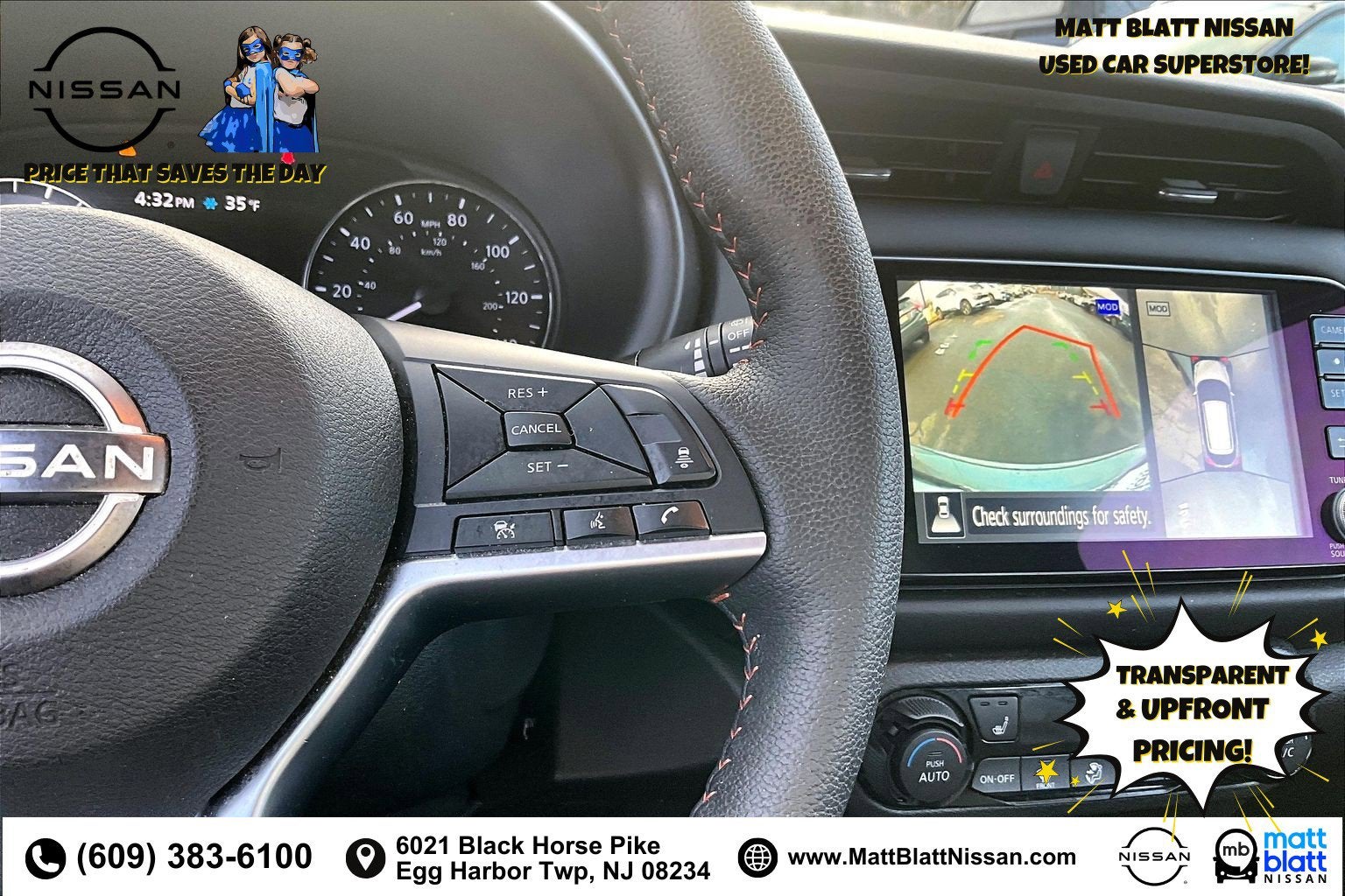 Matt Blatt has been serving New Jersey, Pennsylvania, Delaware, and New York for over 30 Years! Matt Blatt NISSAN is fully committed to maintaining a customer-first approach. Our team of professionals is dedicated to keeping the process quick and easy, putting YOU in control of the whole experience. We look forward to providing you with the finest vehicles and services! Buy with confidence knowing this vehicle has earned its place in our inventory by passing our rigorous multi-point inspection and reconditioning process by our 100% Certified Technicians and it is ready for many miles of reliability and comfort. TRANSPARENT & UPFRONT PRICING WITH NO HIDDEN FEES. We are constantly updating and strategically pricing our inventory to make sure you get a great price without having to be a great negotiator. Carfax is available free of charge on all of our vehicles.
