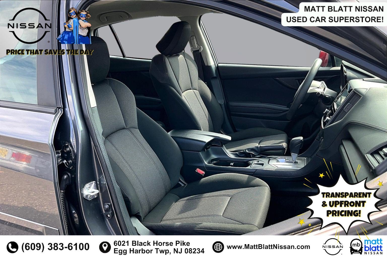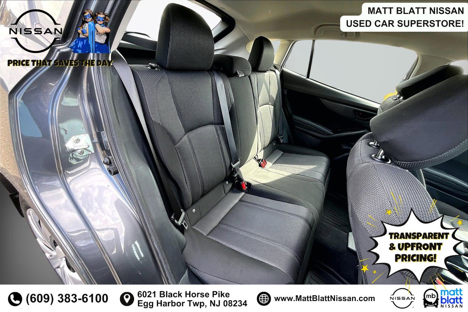 Matt Blatt has been serving New Jersey, Pennsylvania, Delaware, and New York for over 30 Years! Matt Blatt NISSAN is fully committed to maintaining a customer-first approach. Our team of professionals is dedicated to keeping the process quick and easy, putting YOU in control of the whole experience. We look forward to providing you with the finest vehicles and services! Buy with confidence knowing this vehicle has earned its place in our inventory by passing our rigorous multi-point inspection and reconditioning process by our 100% Certified Technicians and it is ready for many miles of reliability and comfort. TRANSPARENT & UPFRONT PRICING WITH NO HIDDEN FEES. We are constantly updating and strategically pricing our inventory to make sure you get a great price without having to be a great negotiator. Carfax is available free of charge on all of our vehicles.