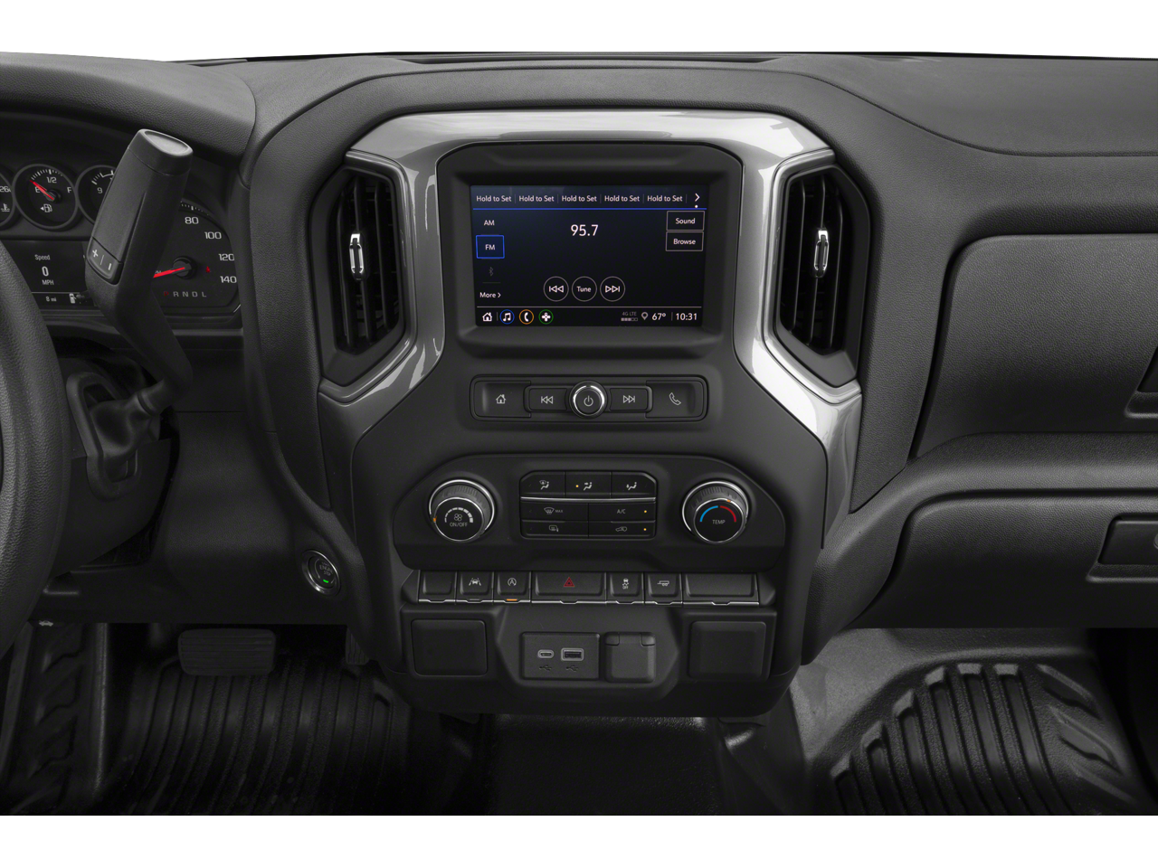 Inside, the Silverado WT offers a functional and well-equipped cabin, with premium audio, Bluetooth® connectivity, and a 3.5 monochromatic display driver information center. The 40/20/40 front split bench seat provides ample room and flexibility, while the rubberized-vinyl floor covering helps keep the interior clean and durable.