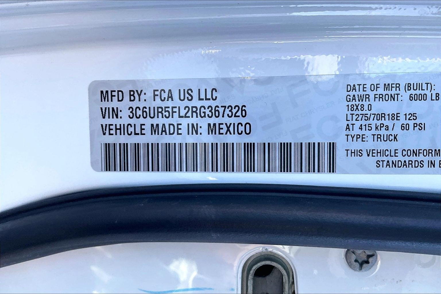 VIN: 3C6UR5FL2RG367326