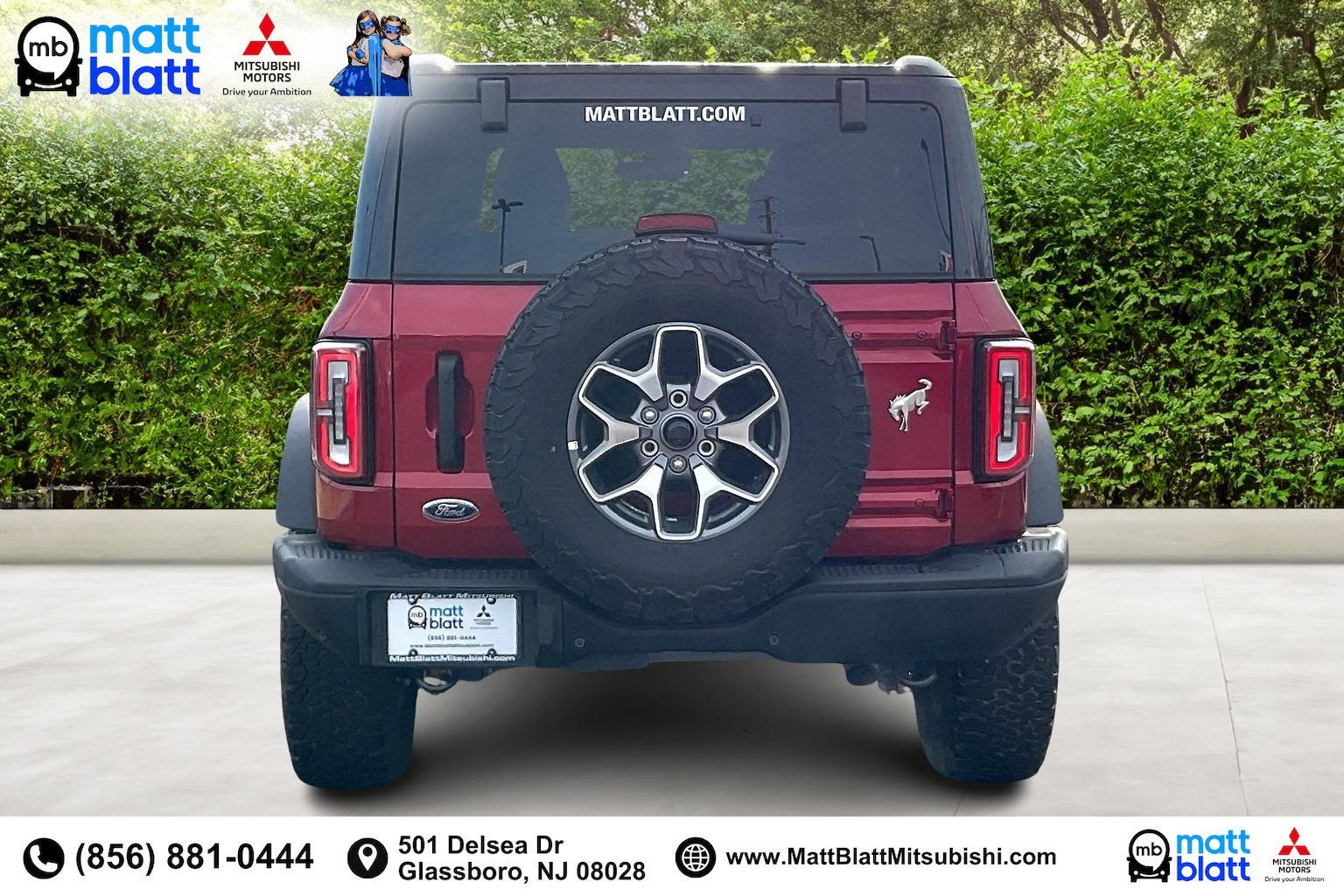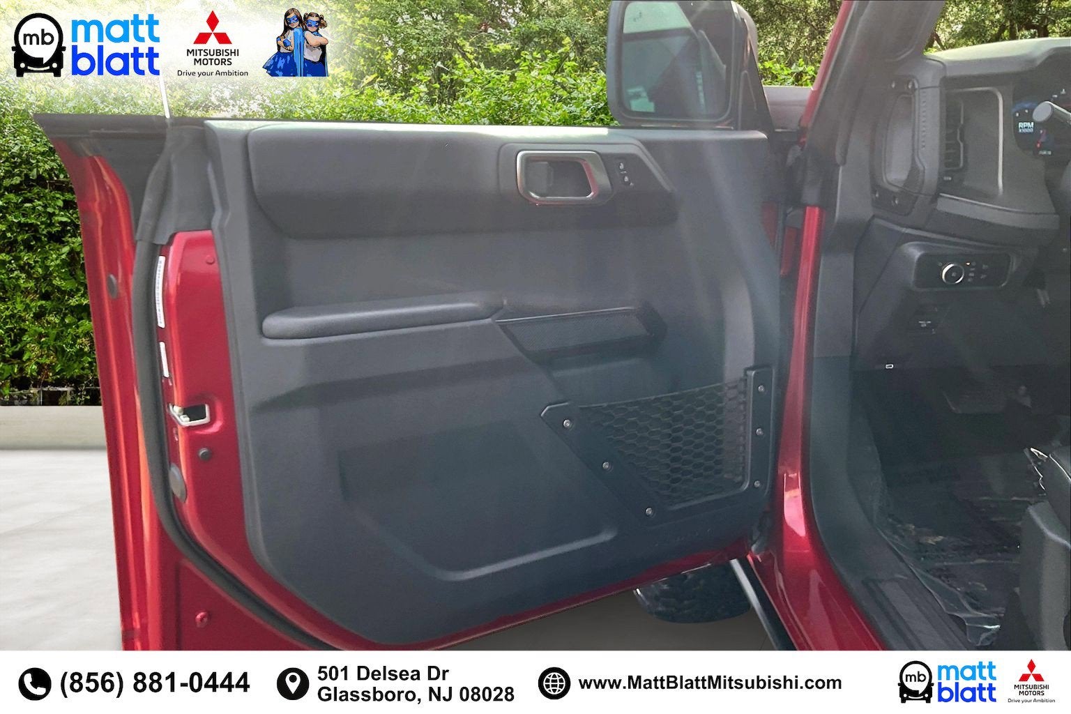 This **new 2025 Ford Bronco Badlands 4WD** finished in **Ruby Red Metallic** is built for serious off-road capability with modern comfort and technology, available now at Matt Blatt Mitsubishi in **Glassboro, NJ**. Powered by the strong **2.7L EcoBoost V6** paired with a **10-speed automatic transmission**, this Bronco delivers impressive torque, responsive performance, and confidence on and off the pavement throughout **South Jersey**. The Badlands trim is engineered for adventure, making it a perfect choice for drivers coming from **Deptford, Washington Township, Turnersville, and Sewell** who want rugged capability without sacrificing everyday usability. With advanced safety tech, heated seats, and connected navigation, this Bronco blends trail-ready toughness with refined driving comfort. If youre searching for a bold, capable new SUV for sale in Glassboro, NJ, this Badlands stands out.